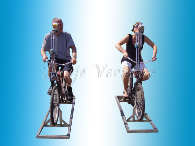 Bierfiets wie kan zo hard fietsen en het eerst ,een glas bier leeg drinken.