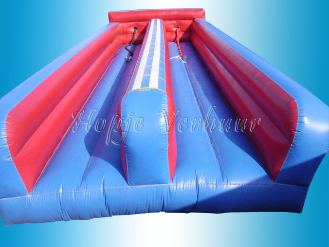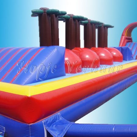 Bungeerun wie kan de meeste meters aan de elastieken trekken 10 meter lang en 4 meter breed.