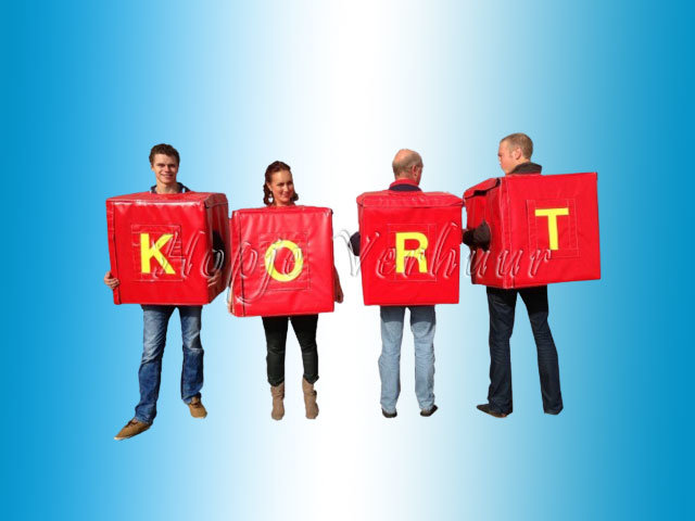 Het letterpakken spel is bekend van het televisieprogramma “De jongens tegen de meisjes”. De quizmaster stelt vragen, waarop de vier personen in de letterpakken en hun teamleden het antwoord mogen geven. Er wordt pas een nieuwe vraag gesteld als het antwoord op de letterpakken zichtbaar is. Maak zoveel mogelijk woorden binnen de tijd, het team met de meeste woorden wint het spel!