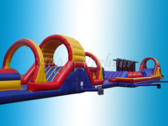 Mega competitie baan met stormbaan dubbele bounce off en klimglijbaan 46 meter lang.