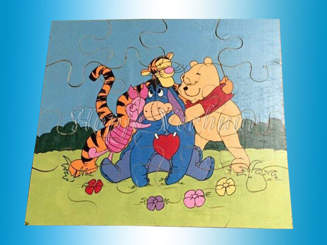 reuze puzzel van Winnie de Pooh van 105 maal 118 cm. wie kan het snelst de puzzel in elkaar zetten.