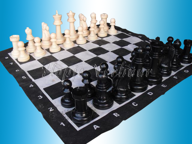 schaken groot het schaakveld is 0,90 maal 0,90 mtr.