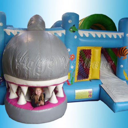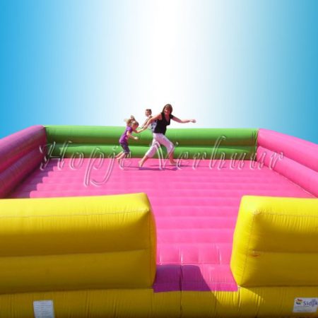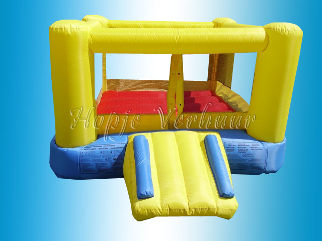 Voor onze kleinste kikkers tot 4 jaar geheel afgeschermd springkussen met glijbaantje 2,5 maal 2,5 meter. Kan ook binnen gebruikt worden.