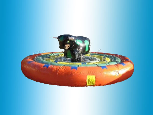 stier voor kinderen waardoor men door middel van 4 touwen die aan de stier zijn bevestigd, elkaar proberen van de stier te trekken.