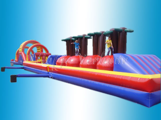 Bezorg kinderen de dag van hun leven met deze unieke stormbaan ! Wie van de twee spelers weet het snelste de obstakels te overwinnen, als eerste over de glijbaan te glijden en het einde van de baan te behalen? Spreek met het thema en de kleurrijke objecten jongens en meisjes aan en zorg voor urenlang speelplezier. Garandeer een actieve beleving met veel spelelementen verdeeld over een extra brede baan. Jouw deelnemers zullen er nog lang over napraten.