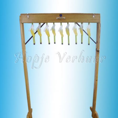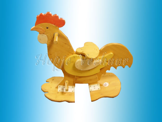 Wakkel haan, door je naar voren en naar achteren te bewegen gaat de haan vooruit, wie kan de snelste afstand afleggen.